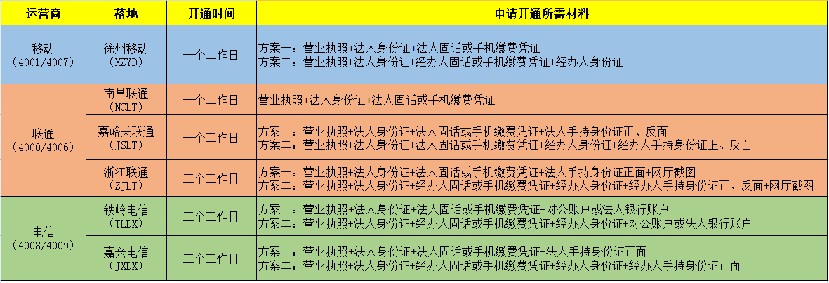 (ZJLT)" 三個(gè)工作日 "方案一:營(yíng)業(yè)執(zhí)照+法人身份證+法人固話或手機(jī)繳費(fèi)憑證+法人手持身份證正面+網(wǎng)廳截圖