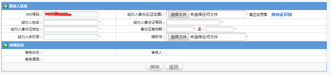 已經(jīng)開通400電話客戶如何修改經(jīng)辦人聯(lián)系手機(jī)號(hào)碼品牌:卓誠(chéng)通訊 關(guān)鍵字:400電話辦理 日期:2018.12.12 閱讀:5129次 來自:http://m.intel-intel.cn 編輯:陳婷 運(yùn)營(yíng)商及工信部對(duì)400電話辦理及后期維護(hù)的資料要求越來越嚴(yán)格,但是這樣對(duì)于我們400電話服務(wù)商來說,加大了很多工作量,比如現(xiàn)在就遇到一些比較繁瑣的事情,就比如說客戶經(jīng)辦人已經(jīng)離職了,但是號(hào)碼一些繳費(fèi)提醒,漏電提醒,號(hào)碼使用情況都是發(fā)到之前那個(gè)經(jīng)辦人手機(jī)號(hào)碼上面,這樣給客戶造成很大的損失,但是400電話不斷再打擊詐騙電話,積極配合工信部做實(shí)名制認(rèn)證,綁定號(hào)碼認(rèn)證,繳費(fèi)延期電話回訪各個(gè)方面都不能忽略。