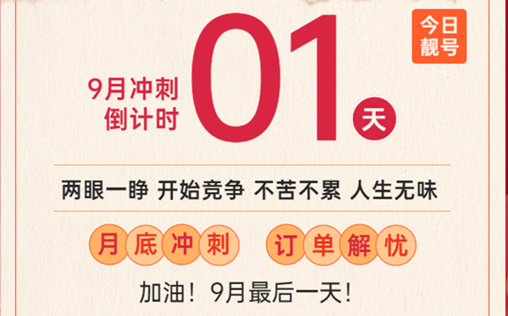 ![]() 兩眼一睜,開始競爭!不苦不累,人生無味!月底沖刺,訂單解憂~加油!9月最后一天~~